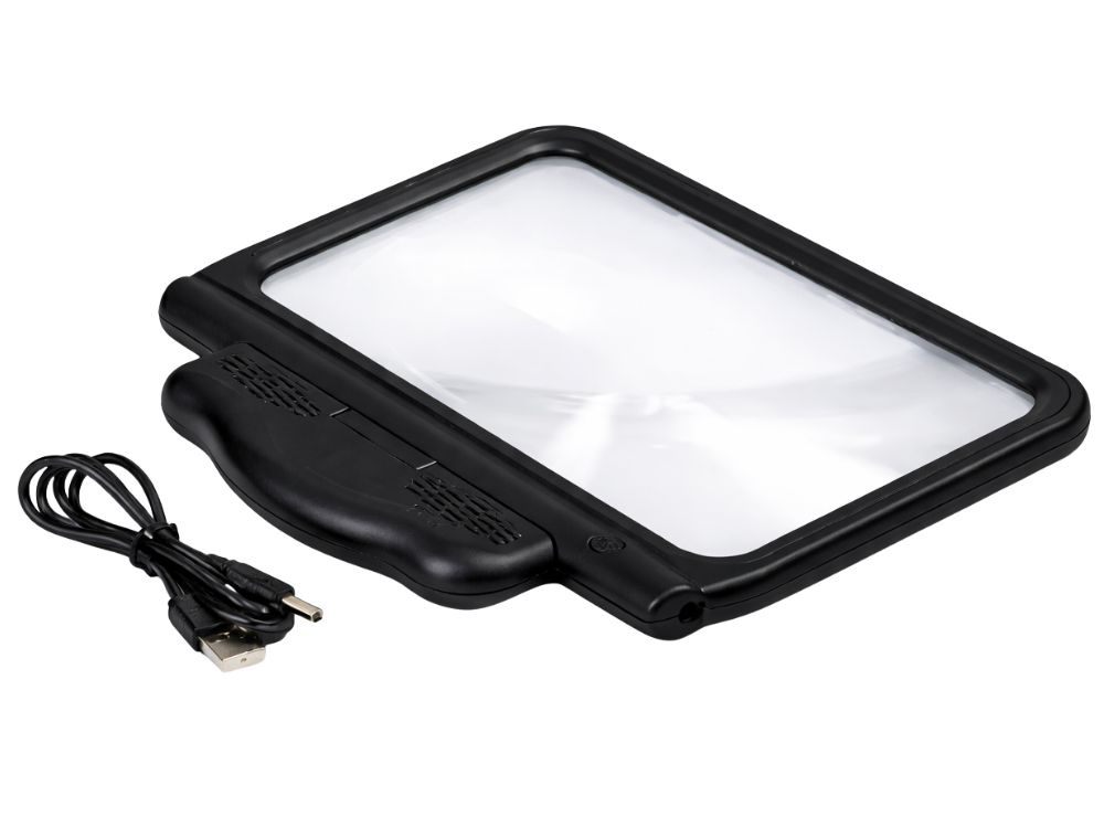 Poręczna lupa LED 2,5x z 3 trybami podświetlenia i ładowaniem USB. Idealna do czytania, dla seniorów i pracy z drobnym drukiem. Sprawdź teraz!