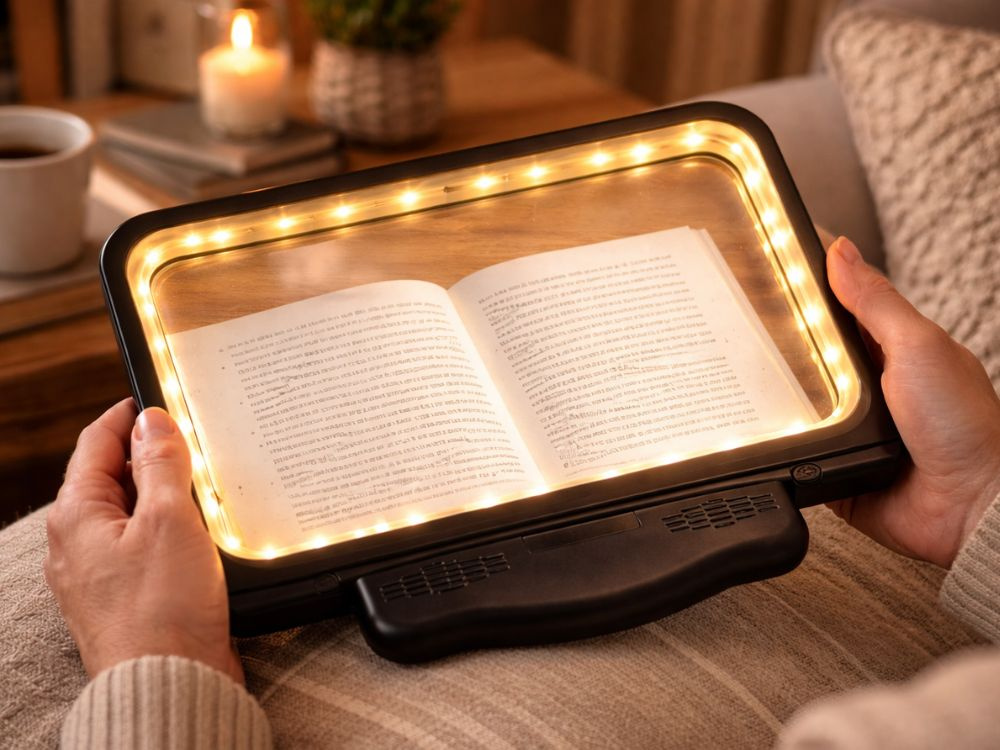 Dzięki wbudowanemu oświetleniu LED z trzema trybami światła, możesz dopasować jasność do swoich potrzeb – niezależnie od tego, czy czytasz książkę, gazetę, instrukcję czy pracujesz nad precyzyjnym projektem.