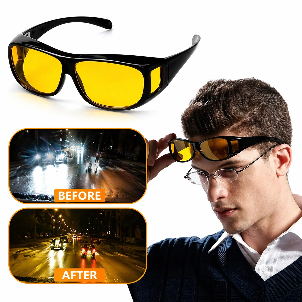 FootService Okulary do jazdy nocnej HD Vision 3w1 – antyodblaskowe, na okulary korekcyjne