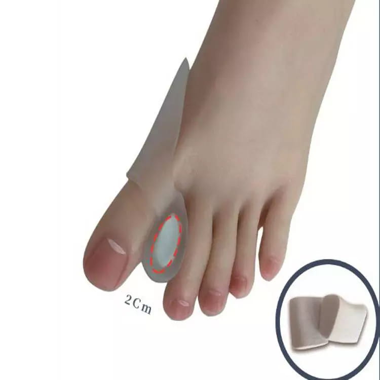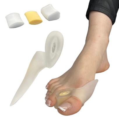Klin żelowy zapobiega nachodzeniu palców na siebie, pomaga prostować koślawe palce.