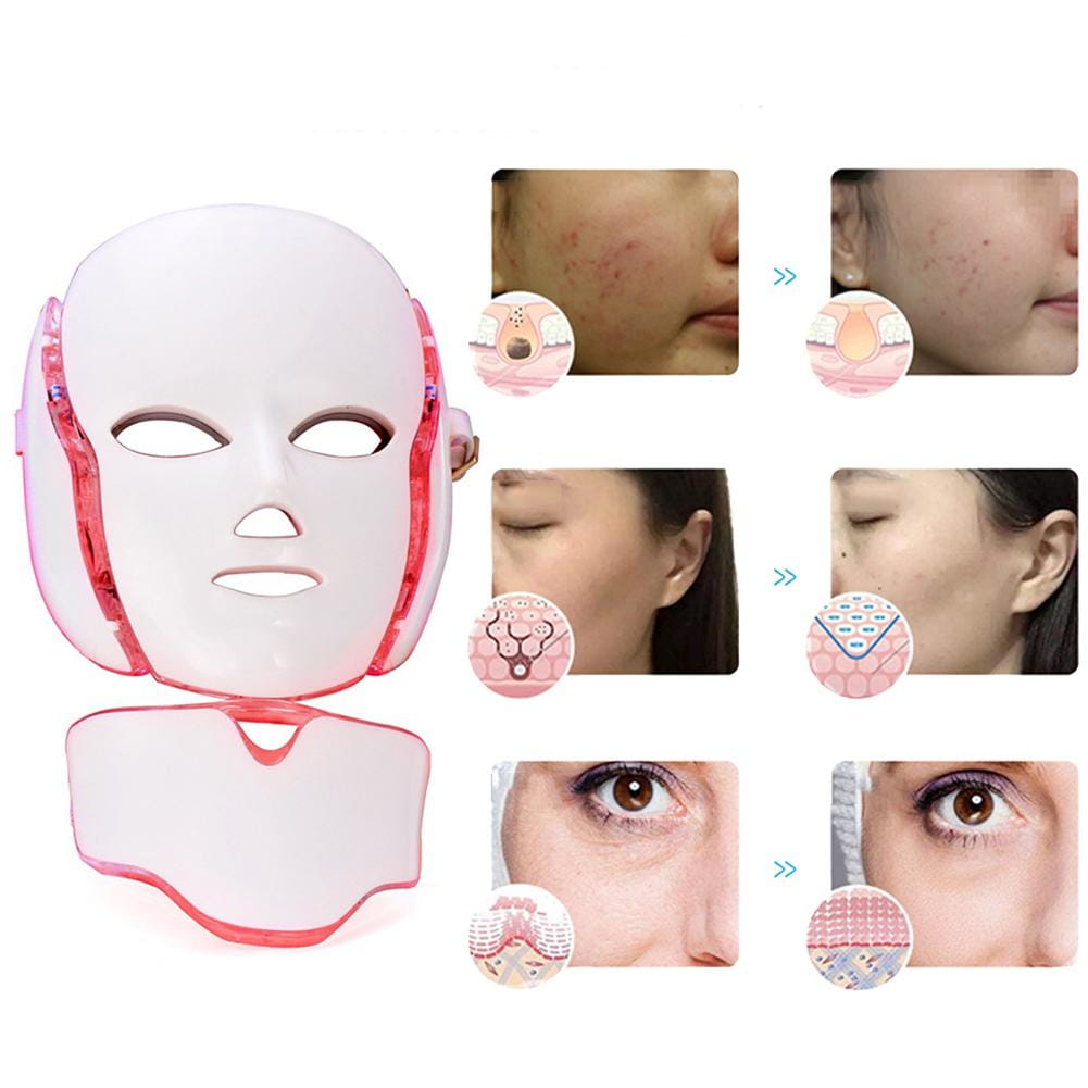MASKA LED TERAPIA FOTONOWA 7 KOLORÓW Z NAKŁADKĄ NA SZYJĘ