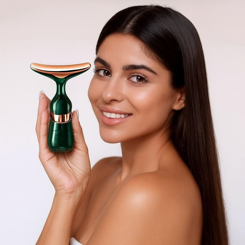 Wyposażony w trzy wymienne końcówki: do twarzy, szyi i oczu – zapewnia kompleksową pielęgnację.