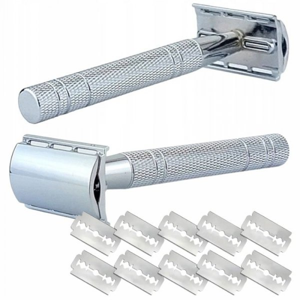 MASZYNKA DO GOLENIA NA ŻYLETKI - METALOWA - TRADYCYJNA + ŻYLETKI 10 SZTUK