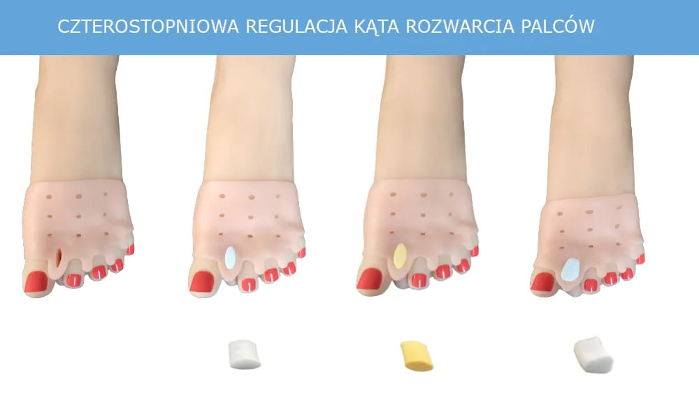 Wpływa na zmniejszenie bólu, koryguje ułożenie palców stopy.