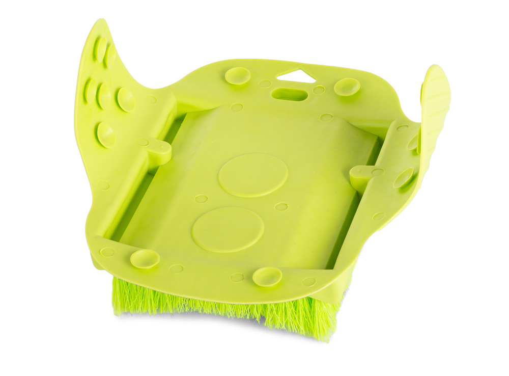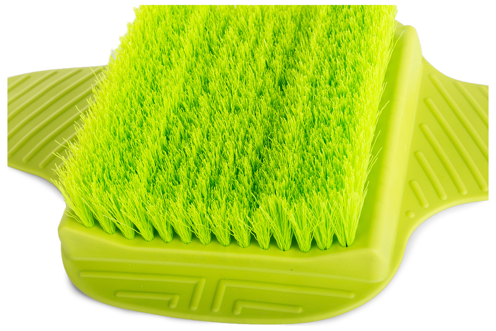 Wystarczy umieścić szczotkę na płaskiej powierzchni, polać płynem do kąpieli, a 1000 delikatnych włosków, dokładnie wyczyści i wymasuje stopę.