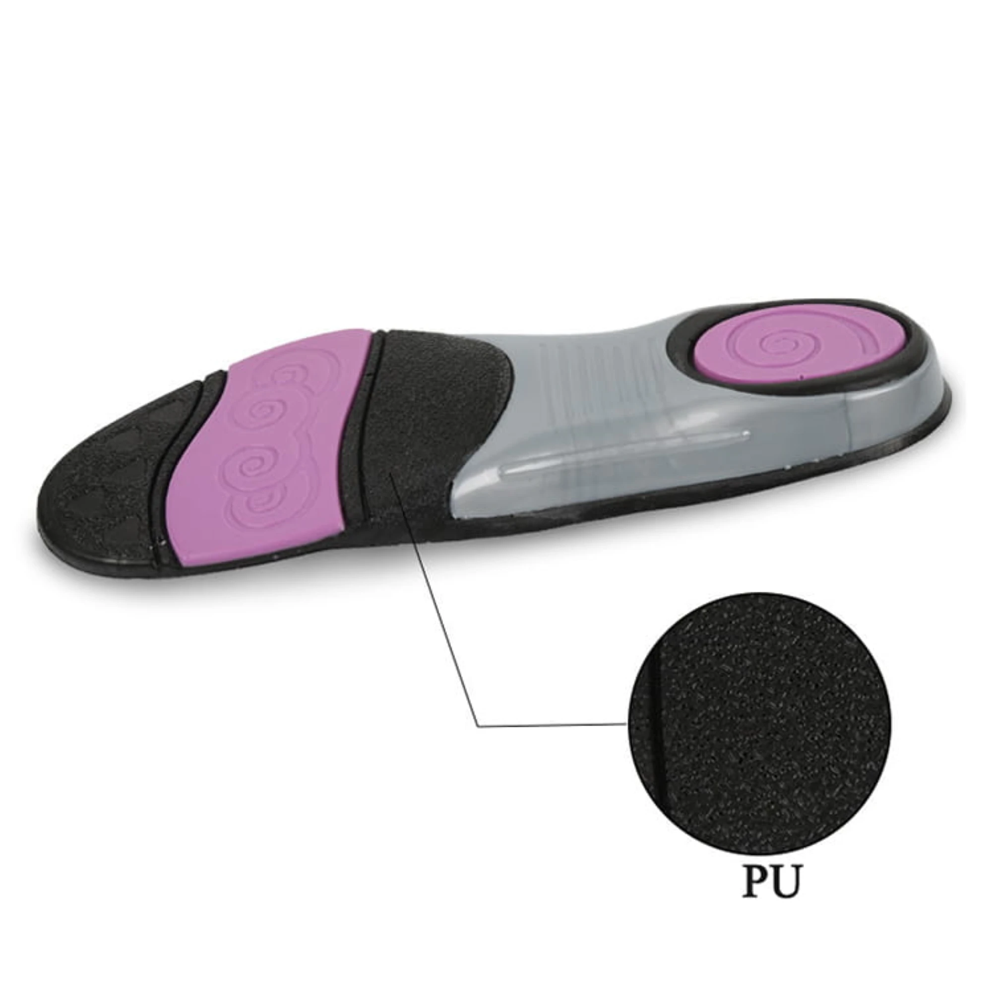 Profilowane wkładki żelowe zostały stworzone, aby odciążyć Twoje stopy, kolana i kręgosłup, jednocześnie zapewniając maksymalny komfort przy każdym kroku.